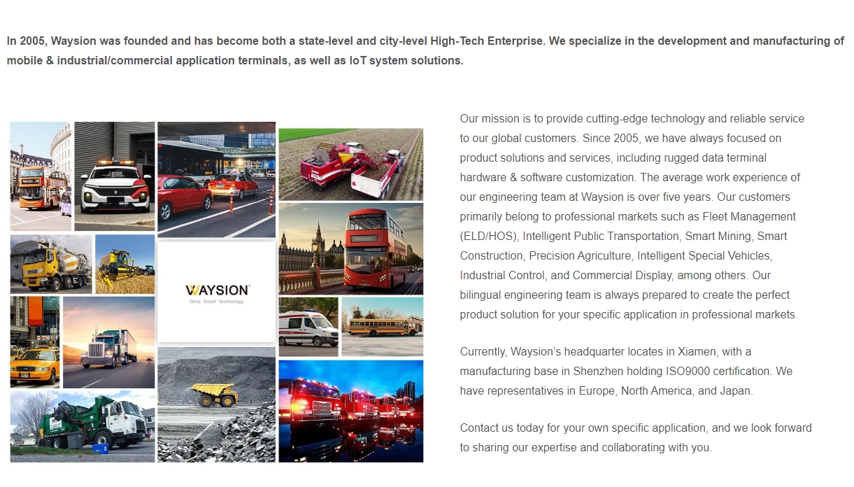 Waysion is a technology company that specializes in developing and manufacturing rugged mobile devices and industrial/commercial application terminals, as well as providing IoT system solutions. Here are the key points about Waysion: