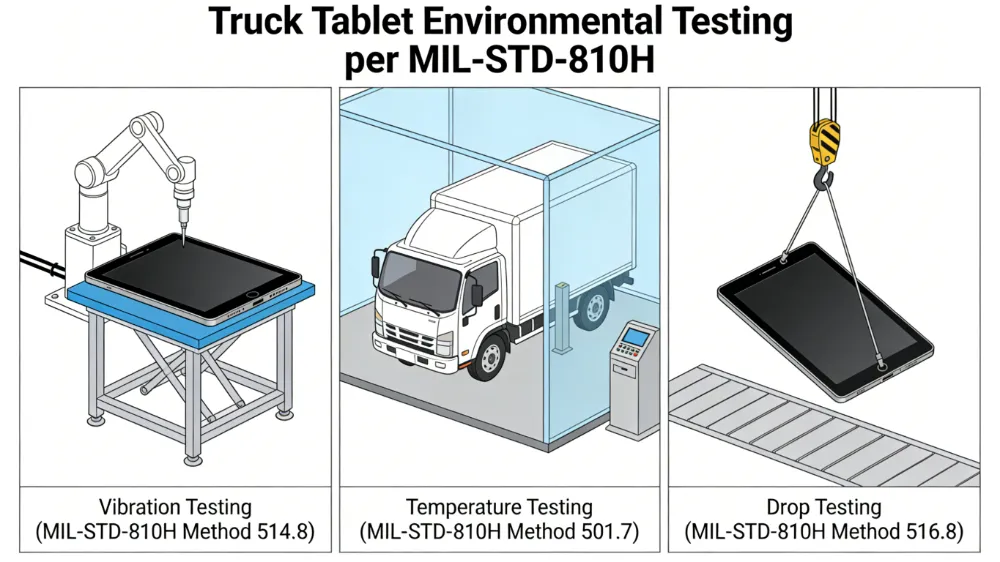 - Vibration Profile: Trucks generate specific low-frequency vibrations; tablets must pass ISO 16750-3 mechanical load tests.